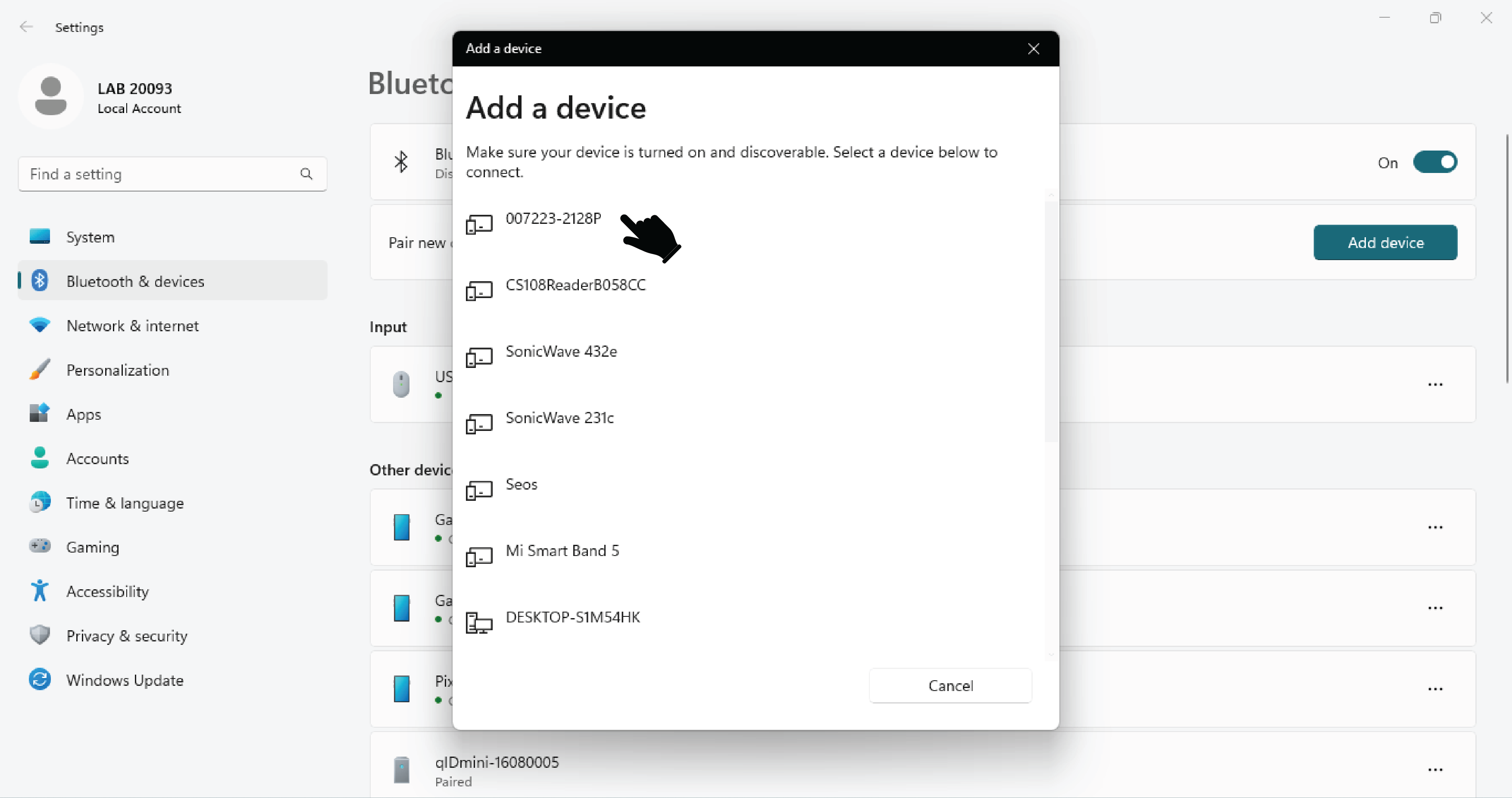 2. Select Bluetooth and find your RFID Device.