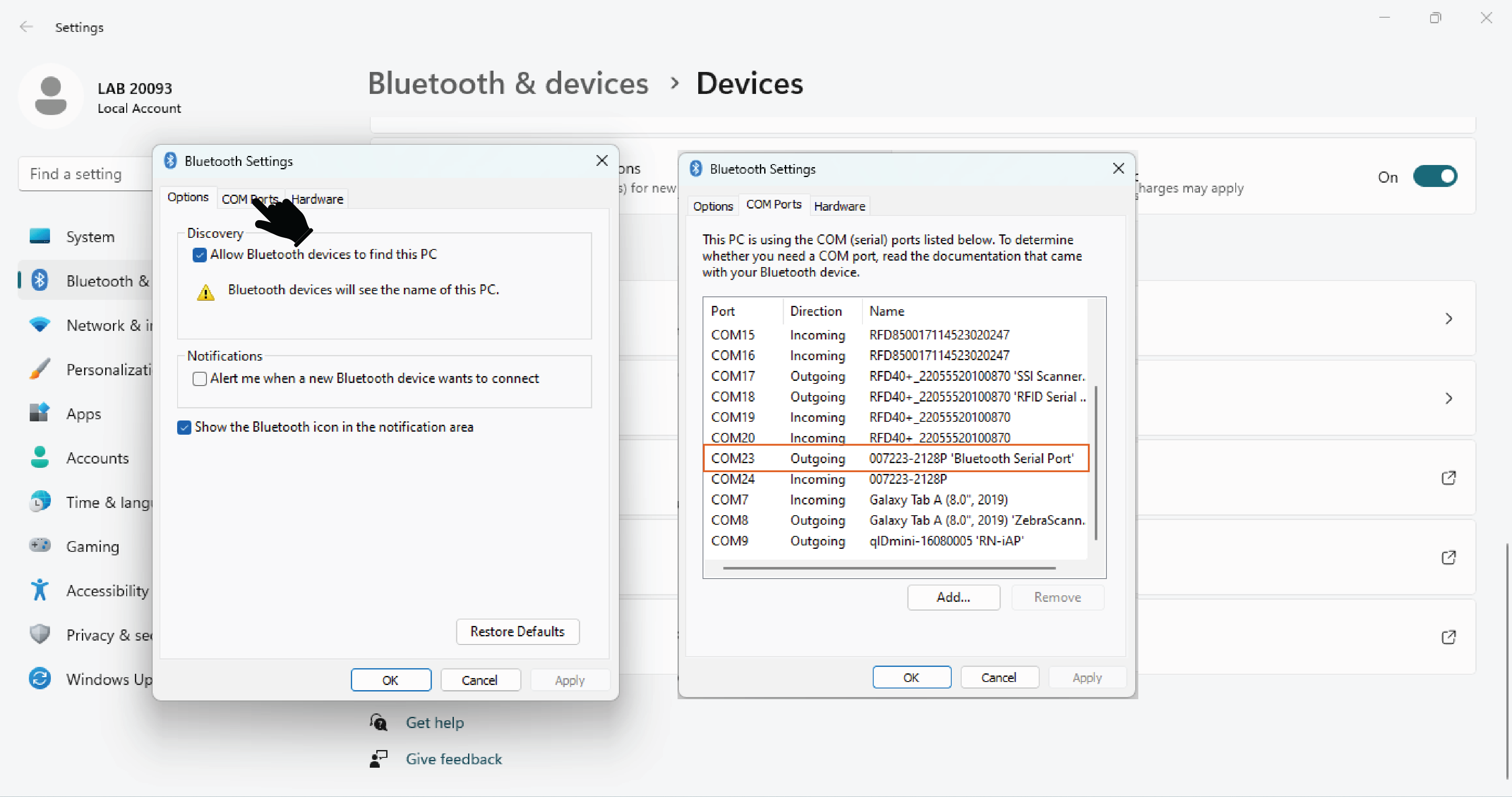 This article describes how to check the RFID reader's outgoing Bluetooth COM port. The TagMatiks AT Lite Window Application requires COM Port details to connect over Bluetooth to RFID readers, specifically for Caen & TSL.