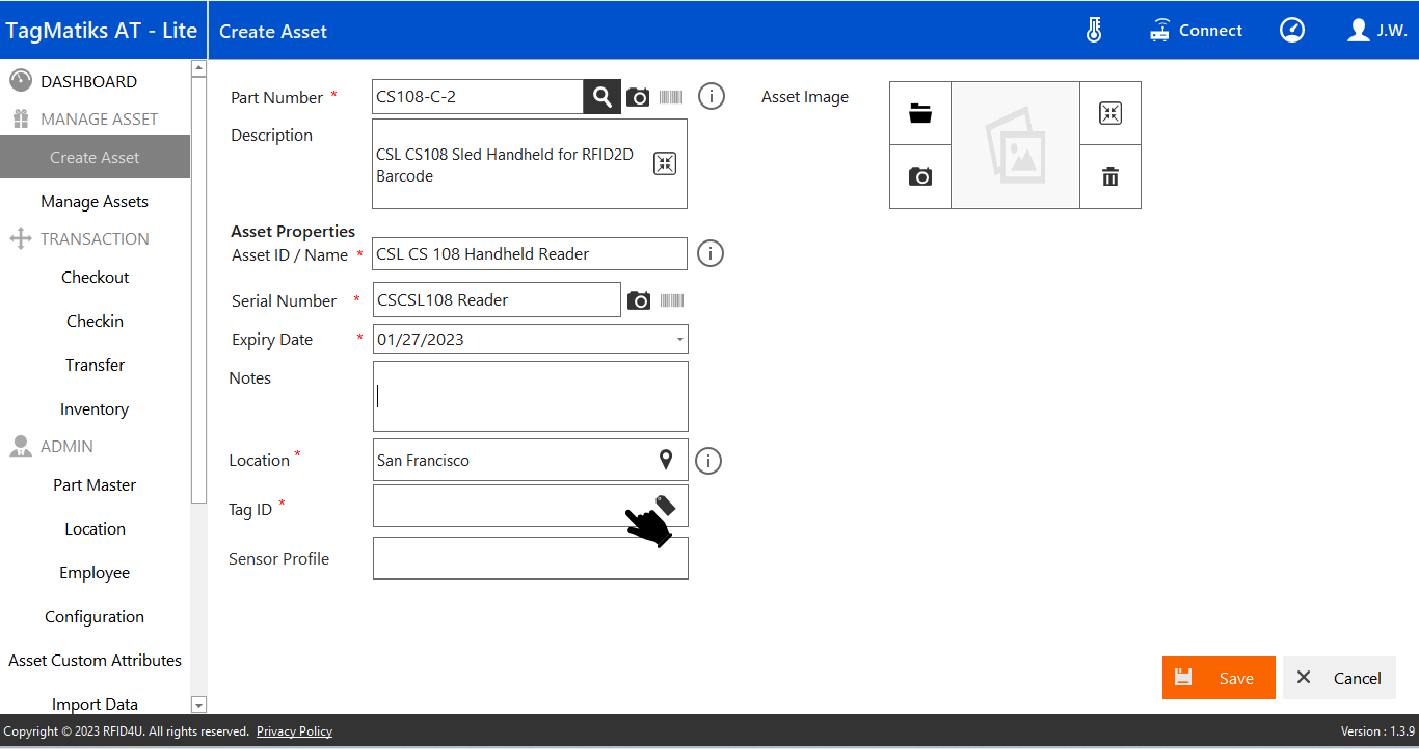 3. To enter Tag ID which is a mandatory field, click on the tag icon as shown in the image below.