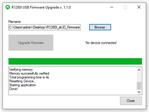 10. Power off the reader, disconnect the USB cable and then power on the reader again: the reader is ready for normal operation.