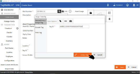 18. Once you scan / enter the Tag ID on this tab, press Assign Tag.