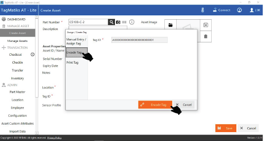 16. If you do enable the Encode Tag option, the next Tag ID for the EPC value will be displayed automatically in the Tag ID field. Press the Encode Tag option to encode the RFID tag