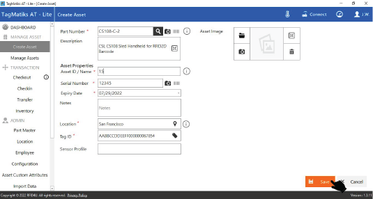 Creating assets is the first major step to start using RFID for asset tracking. The intent of creating an asset is to not only populate details about an asset but also associate an RFID tag / label to that asset so it can be used in transactions.
