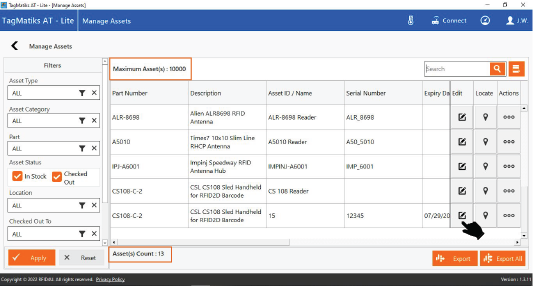 4. Click on the edit icon of desired asset on the right-hand side of the screen as shown in image below. You can search using the search as well as a filter using the filter option