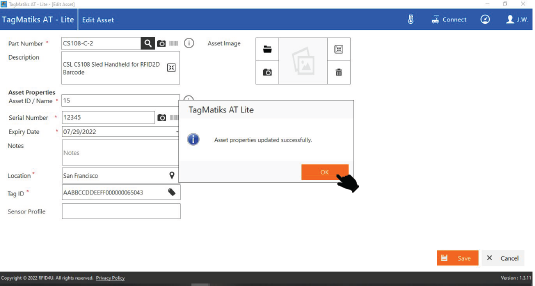 7. A pop up window will appear stating that “Asset properties updated successfully”