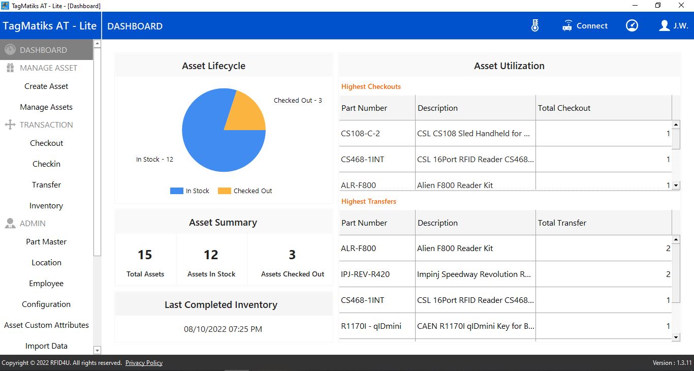 The find asset functionality uses the RSSI (receiving strength signal indicator) value of an RFID tag to help you gauge how close you are to a specific asset. This approach can help you find assets that may be located in a specific area. The general rule of the thumb is that this is an estimate but can be used to help cut down on manual time looking for an asset.