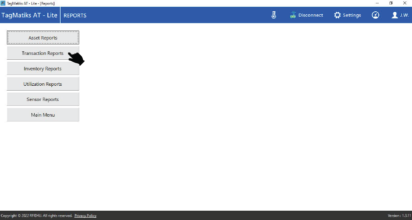 2. Scroll down the menu and click on the “REPORTS” button as shown in the image below.