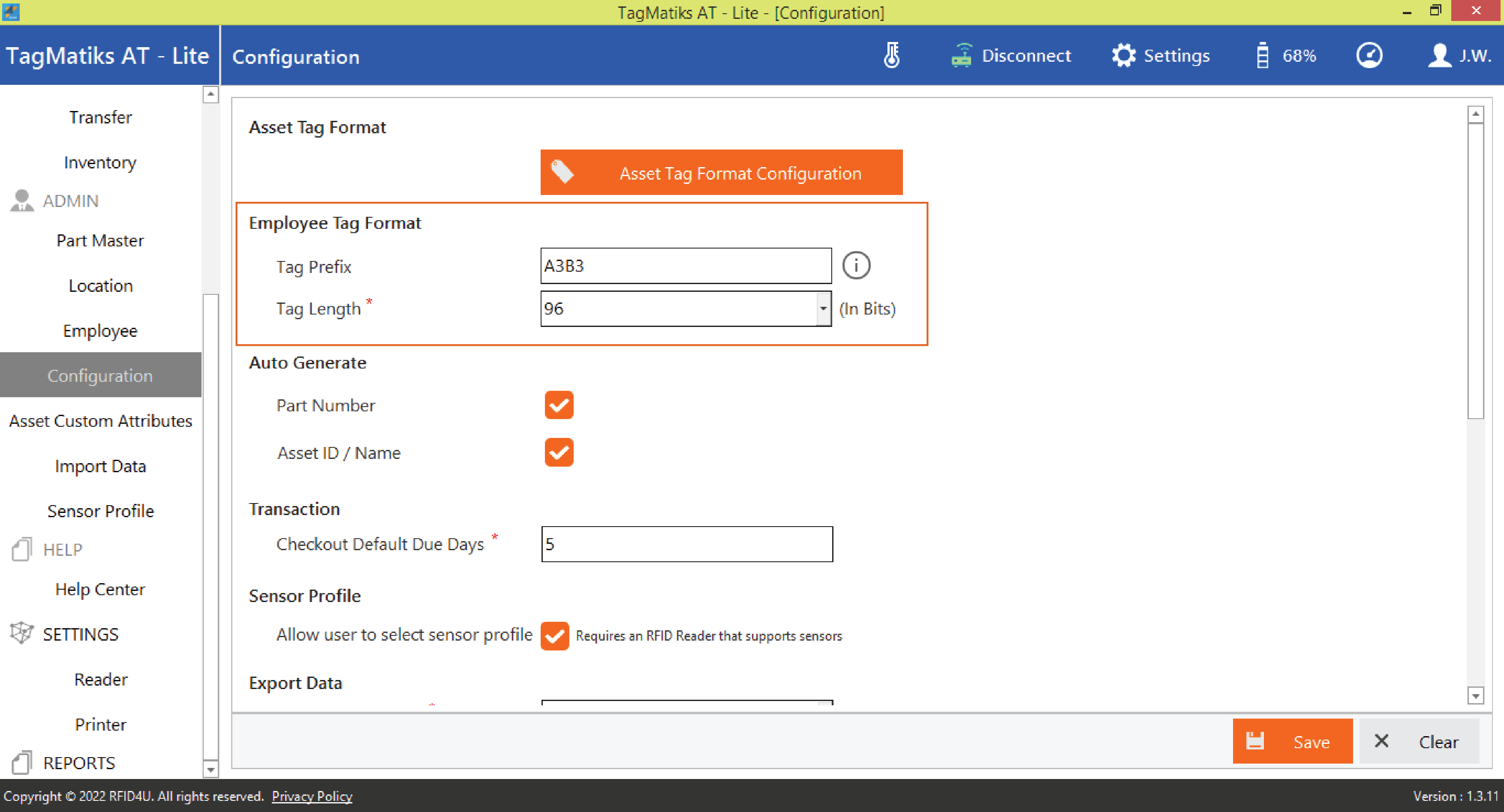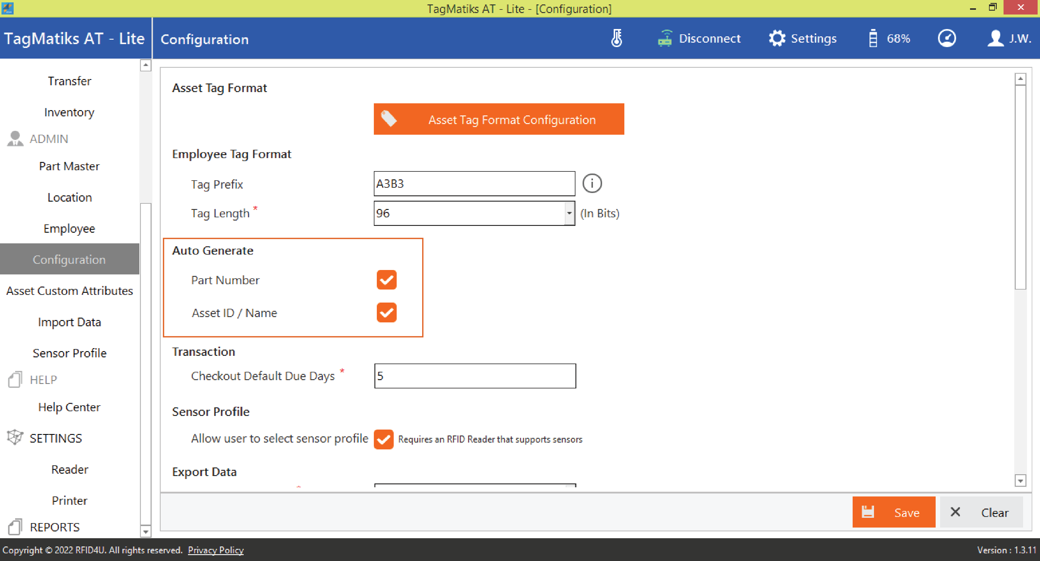 3. The asset tag format configurations allow users to modify the behaviour of associating RFID tags to assets.