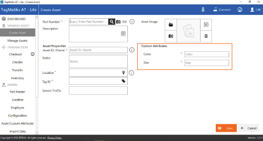 This article covers adding custom asset attributes to TagMatiks AT Lite. Custom fields can be defined to keep track of attributes of an asset that may not be available in one of the out of the box fields. When creating or editing an asset, the custom attributes may be added/ edited. Please note that a maximum of 5 custom attributes can be added at one time.