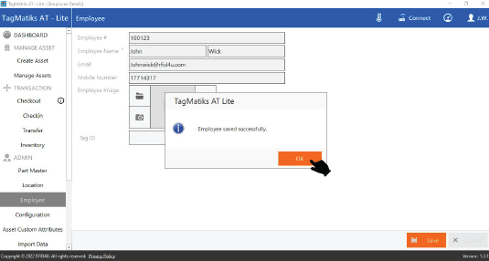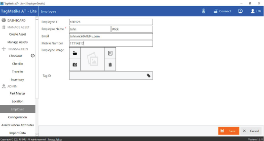 This article covers the functionality of the Employee module. Employees can be added to TagMatiks AT Lite for transactions like Checkout / Checkin workflows. When checking out an asset, an employee is selected and is associated with that employee until that asset is checked back in.