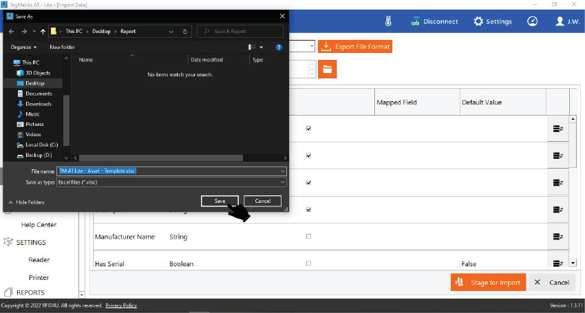 5. Click on “Export File Format” to save the Format/Template for Assets