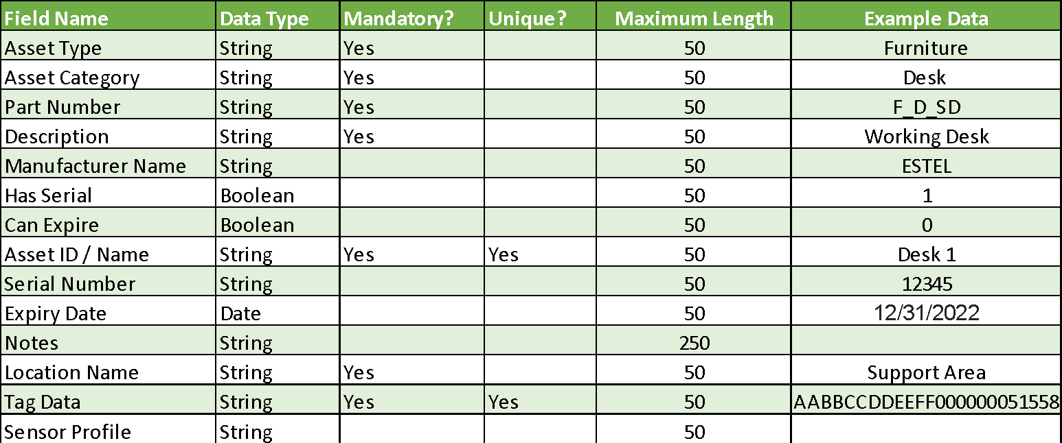 Note: - There are certain rules of formatting of the asset data that must be followed, please follow the data formatting as mentioned in above chart.