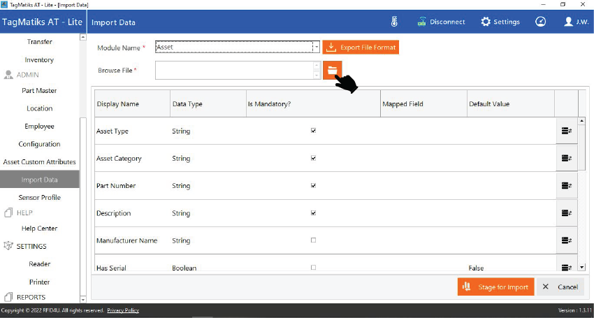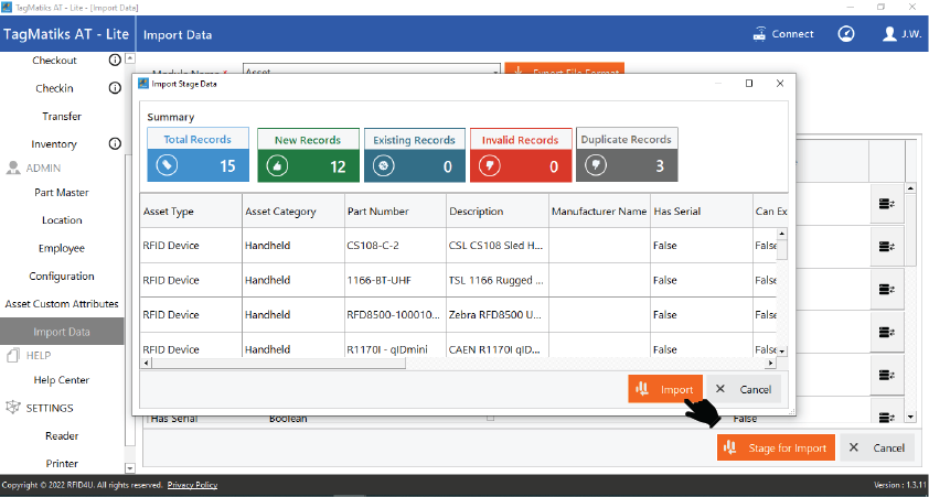 The import tool is designed to help bring in existing data into TagMatiks AT Lite. Due to the nature of mobile applications, the Import Tool is a web-based component that works in conjunction with the mobile application to help import data. The import tool is designed to help bring the batch of data into TagMatiks AT Lite on a single click.