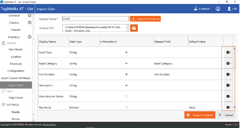 NOTE: If you want to import a custom field for assets, you must first create the custom field in the application before importing the file.
