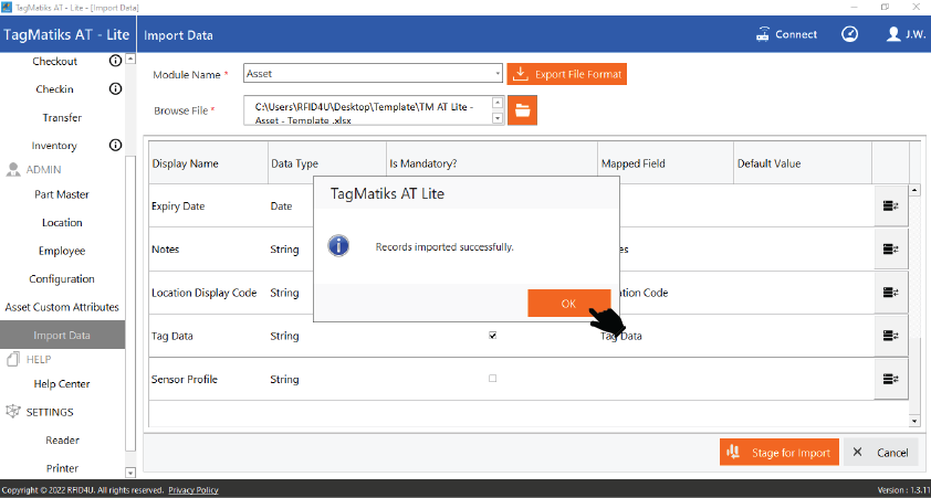 The Import file should be stored locally on the system where, Tagmatiks AT Lite application is installed.