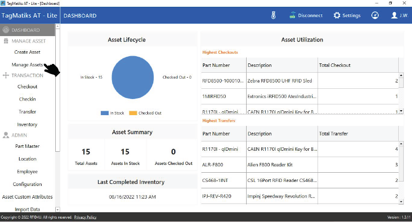 15. For a detailed view of assets, click on the “Manage Asset” button.