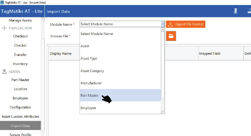 3. Click on the “Module Name” drop down to select the Module for import the file.