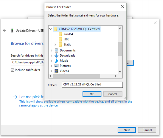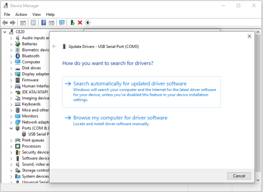 Click on “Browse my computer for driver software” and select the VCP drivers folder