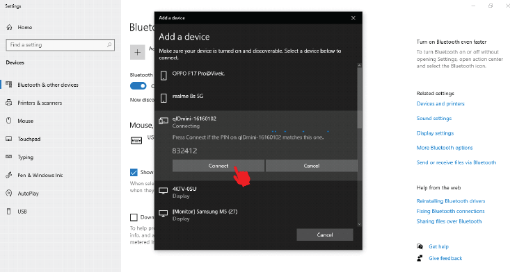 5. Allow time for the connection and pairing process to complete.