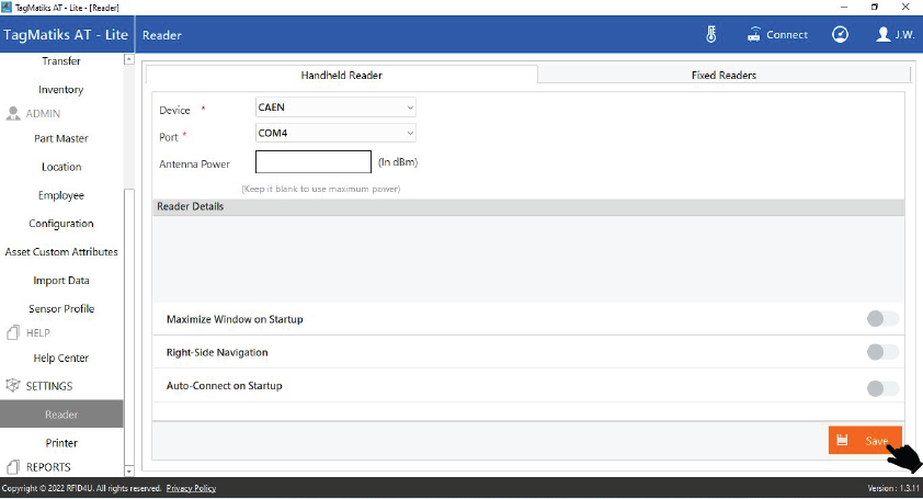 3. After Selection of the Reader Click on “Save”.