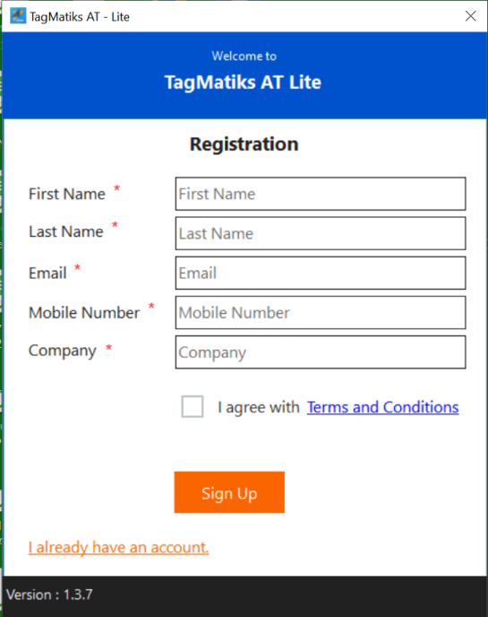 You must have TagMatiks AT Lite installed to create an account.