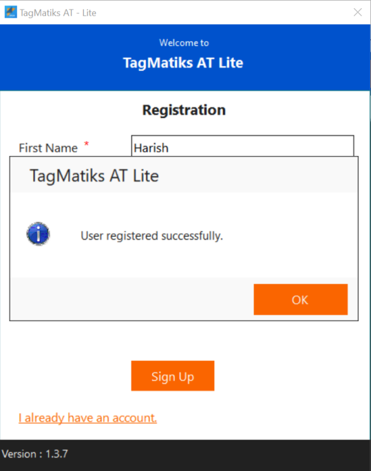 Once you set your password, you can login into TagMatiks AT Lite using these credentials.
