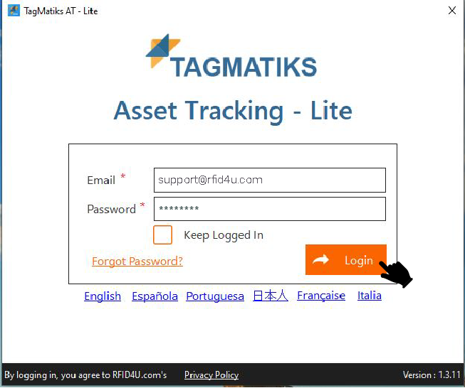 7. Open TagMatiks AT Lite Application and log into it using the credentials.
