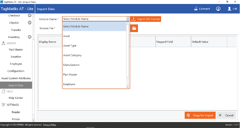 3. Click on the “Module Name” drop down to select the module for importing the file.