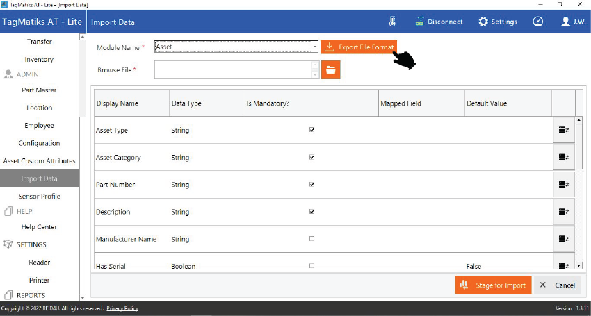 12. All the header fields should be mapped with their respective fields before clicking on the “Stage for Import” button.