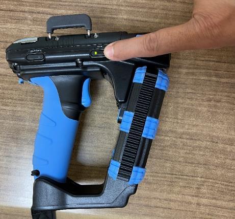 15. Simultaneously the “RFID” LED light up solid YELLOW & “Barcode” LED light us solid BLUE