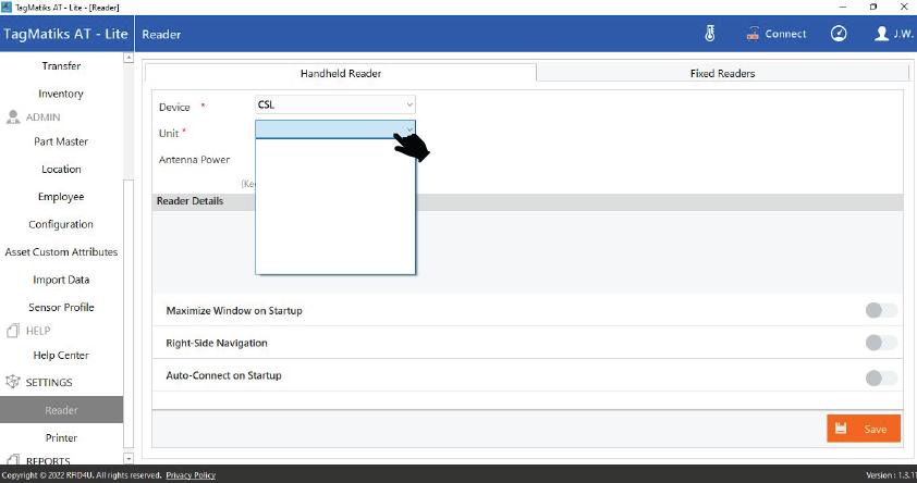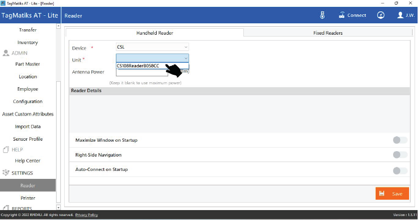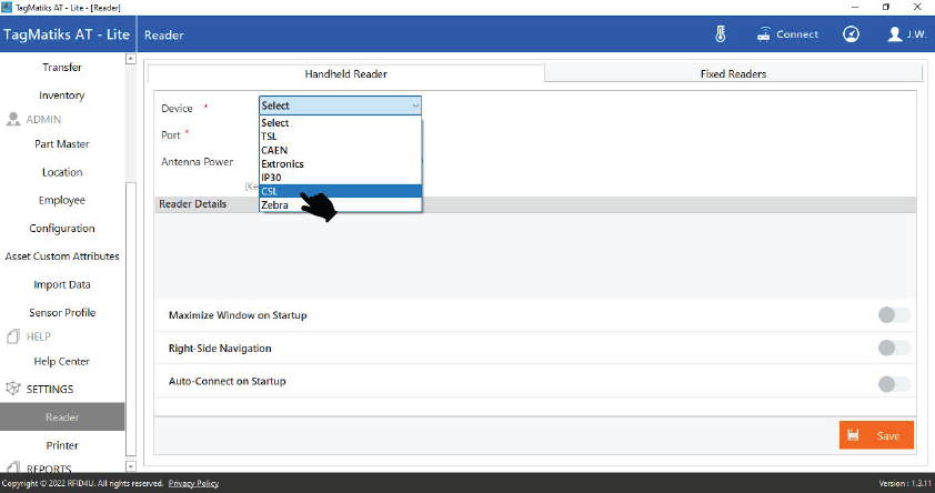 II. On TagMatiks AT Lite Application: CSL Reader check: