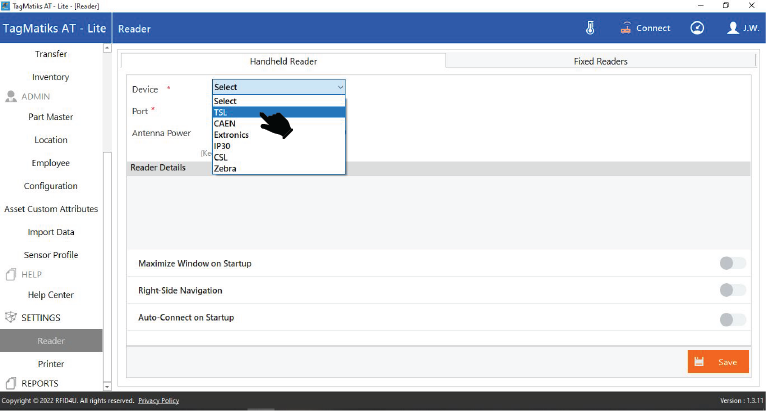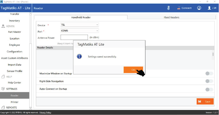 In the TagMatiks AT Lite Application, please first ensure the configuration settings are in sync with the RFID tags. For the same, please follow following steps: