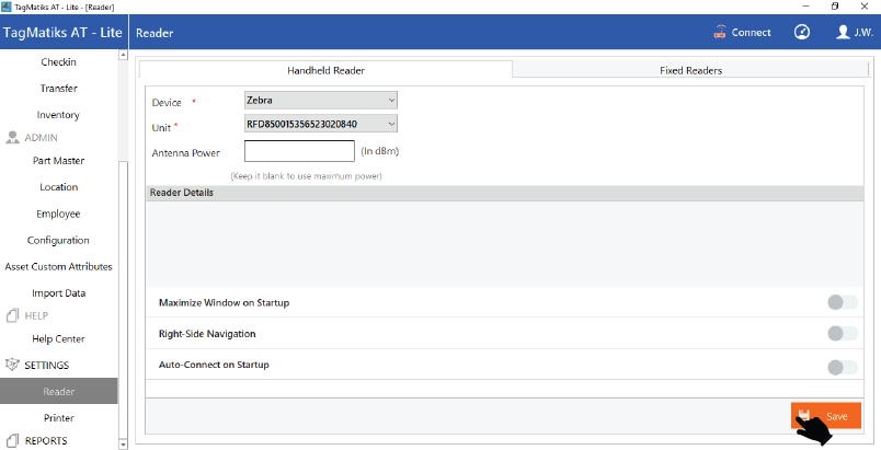 6. Click on the “Save” button from the bottom right-hand side of application to save the reader.