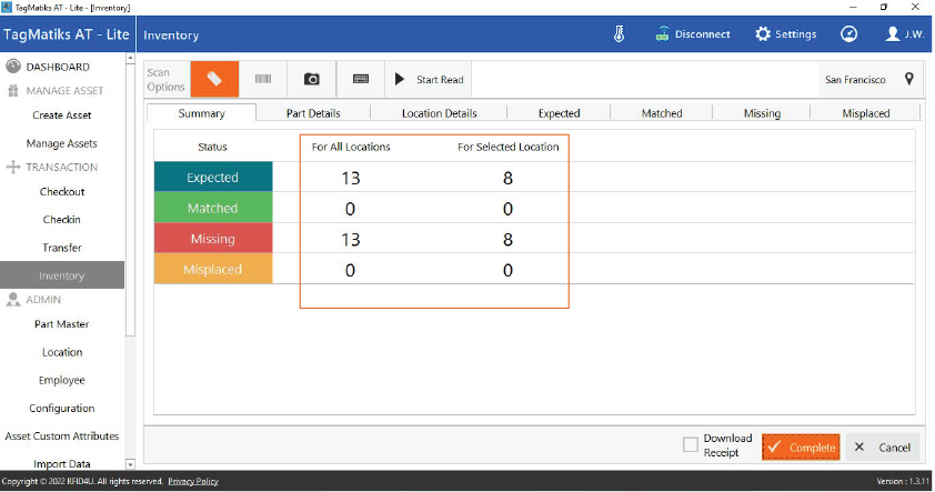 10. Once you release the Trigger button on the RFD8500 Device, the read Inventory status will populate on the application window.